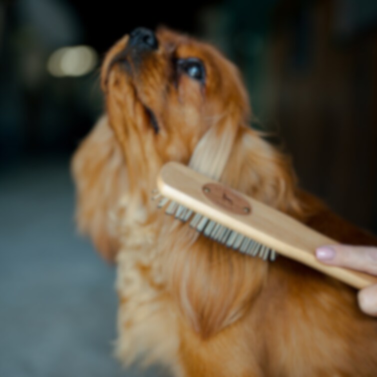 Man- och svansborste med skaft av bokträ, designad för att skonsamt men effektivt reda ut tovor och smuts från både man och svans hos hästar. Kan även användas som pälsborste för att reda ut päls hos hundar och katter. De robusta metallpiggarna säkerställer djupgående genomträngning för optimal pälsvård. Borstens skaft ger ett ergonomiskt grepp som underlättar användningen. Läderremmen erbjuder en praktisk lösning för upphängning i stallet eller hemma. Oavsett om du förbereder för showringen eller ger din fyrbenta vän en välförtjänt spa-dag, är Borstiq Farms pälsborste det självklara valet för de som värdesätter kvalitet och funktionalitet.