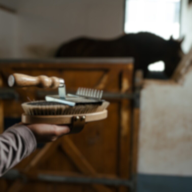 Traditionell ryktskrapa i metall med greppvänligt skaft av bokträ. Håller borstar rena från damm och smuts. Används traditionellt tillsammans med ryktborsten för att dra av överflödigt damm och stöv som fastnar på borsten. Efter varje borsttag drar man ryktborsten på ryktskrapan. En extra rad, med större tänder, för manvård. Går även bra att använda ryktskrapan som den är på riktigt tjocka och täta pälsar, speciellt under fällningsperioder eller vid lerig päls.