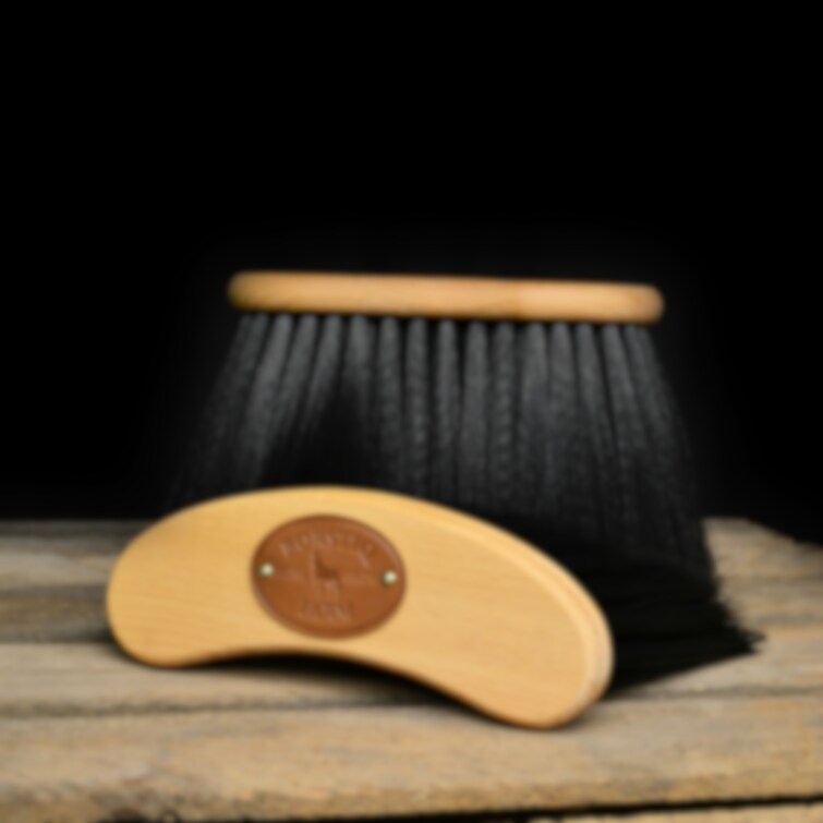 Bananformad rotviska med långa mjuka strån av PP. Med en stabil bananformad rygg av bokträ kombineras hållbarhet med ergonomi, vilket erbjuder en behaglig greppkomfort under borstning. Den speciella formen gör det möjligt att borsta med en mer naturlig rörelse. De mjuka, 12 cm långa flexibla polypropylenborstarna är slitstarka och behåller sin form även efter frekvent användning. Denna borste är inte bara effektiv mot damm utan även idealisk för att ge hästens päls en djupgående rengöring och en strålande lyster. Finns även i en midjeformad variant.