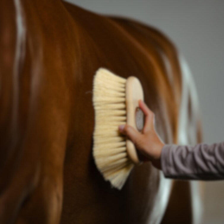 Midjeformad greppvänlig rotviska. Tillverkad av bokträ med borst av naturlig vit kaktusfiber, även kallad tampico-fiber. Ergonomisk designad vilket gör borsten smidig att jobba med. Antistatisk med lagom spänstiga fibrer som passar de flesta hästar. Finns tillgänglig i två borstlängder; 5 cm och 7 cm. Medium mjuk borst som lämpar sig för mindre smutsiga ben och även för rengöring av pälsen. En av Borstiq Farms mest omtyckta borstar.