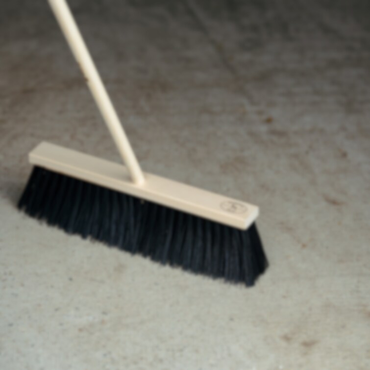 Farmarkvast tillverkad av naturligt obehandlat bokträ med borst av PVC-fiber. PVC-fiber är känt för sin hållbarhet och elastiska natur, vilket innebär att borststråna varken bryts eller blir slitna lätt. Denna typ av fiber står emot vatten och kemikalier, vilket gör den effektiv mot både fuktig och torr smuts. 50 cm bred och med 24mm hål för skaft. Observera att kvasten levereras utan träskaft.