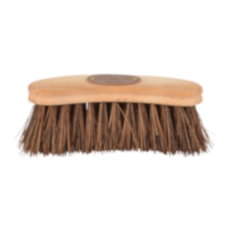 Hästviska tillverkad av naturfibern Bassine.Denna borste är ergonomiskt utformad för att ligga bra i handen och ge effektiva borsttag. Hästviskan Bassine passar utmärkt att ta bort lera med då borststråna är hårda och kraftiga.