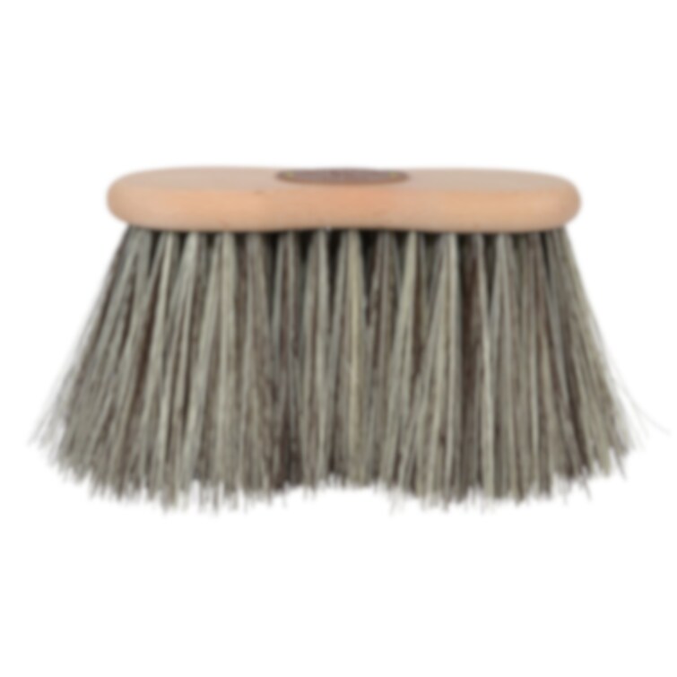 Klassisk rotborste i midjeformad design med rygg i bokträ och långa, flexibla borst av polypropylen. Den smala midjan ger ett stabilt och bekvämt grepp under borstning, medan formen följer hästens kropp och möjliggör en naturlig och effektiv borströrelse. De 12 cm långa mjuka stråna avlägsnar damm på djupet och lämnar en glänsande finish.