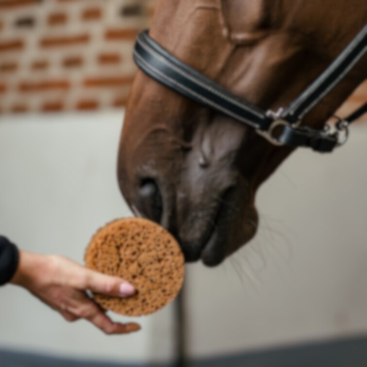 Rund brun groomingsvamp från Borstiq Farm, en lyxig tvättsvamp för häst som ger en skonsam och exklusiv tvättupplevelse. Med sin runda form är svampen lätt att hålla i under hela tvätten – oavsett om du schamponerar hästen inför tävling eller svampar av efter ett svettigt ridpass.